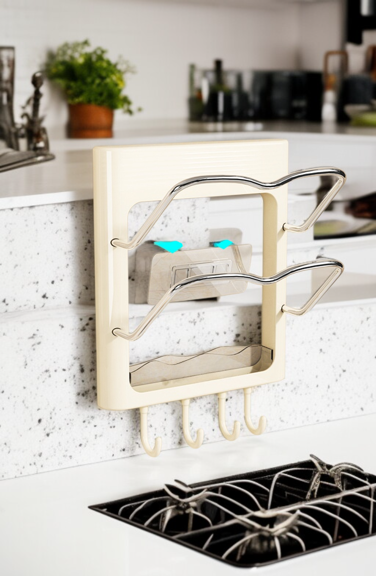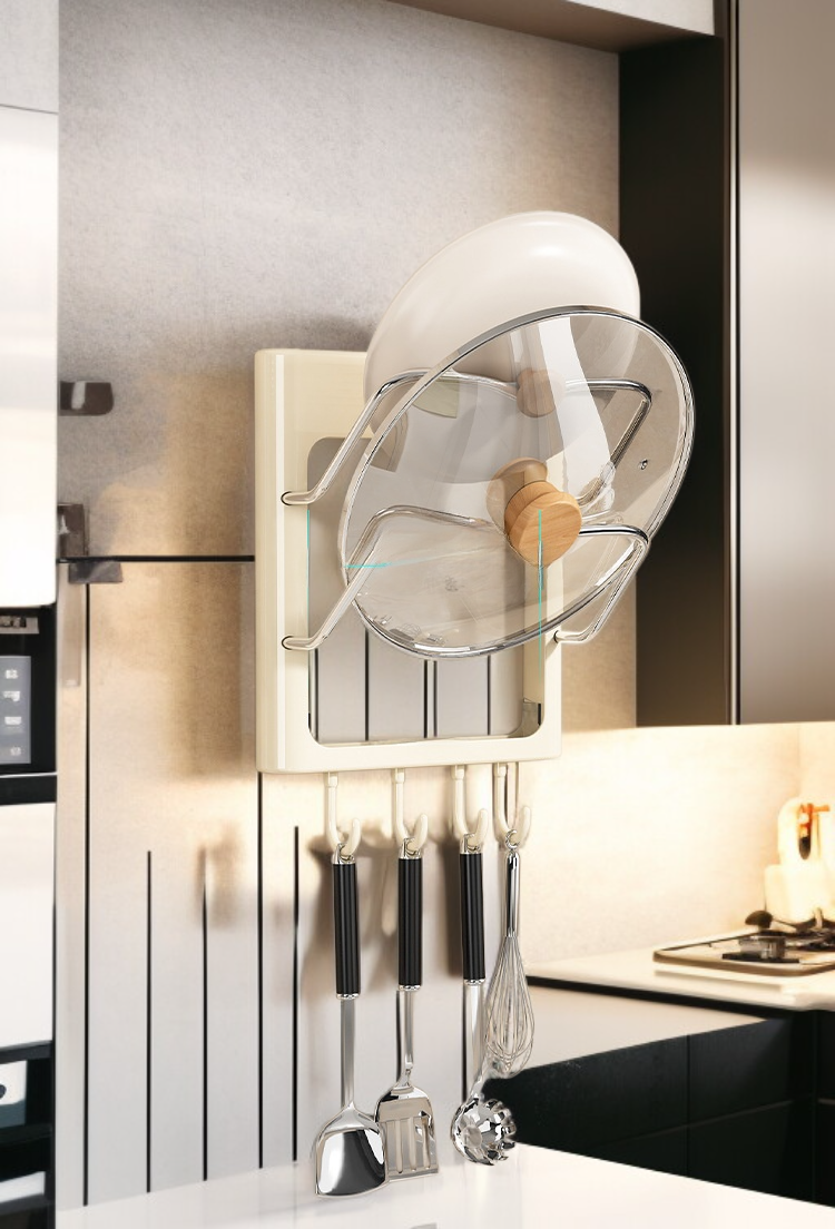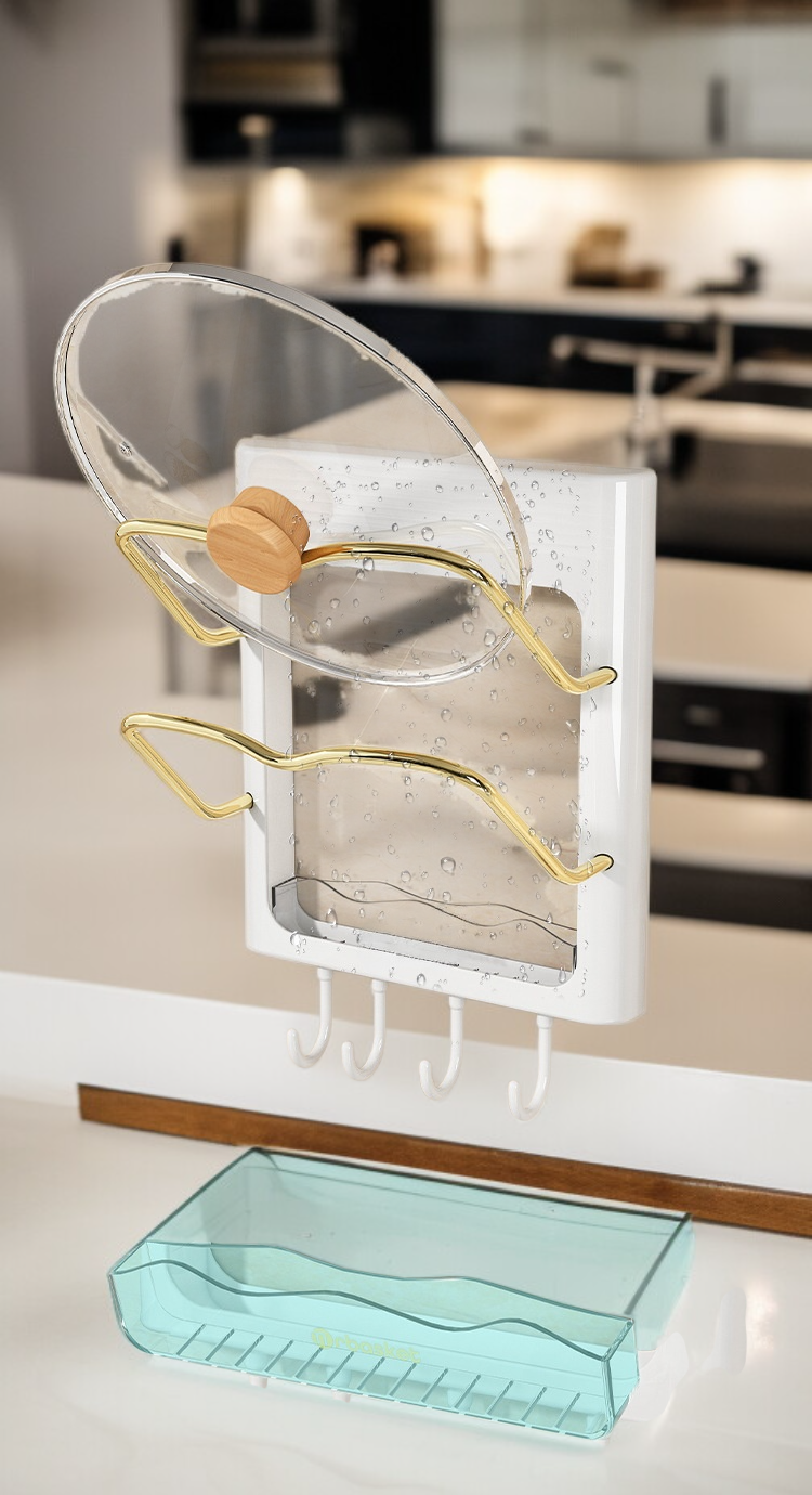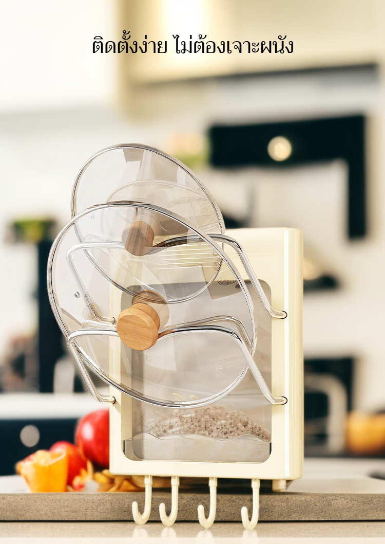 ชั้นวางฝาหม้อและเครื่องม้วนผมติดผนัง ไม่ต้องเจาะผนัง