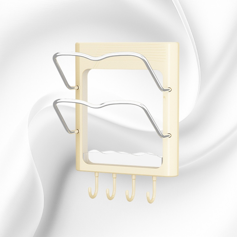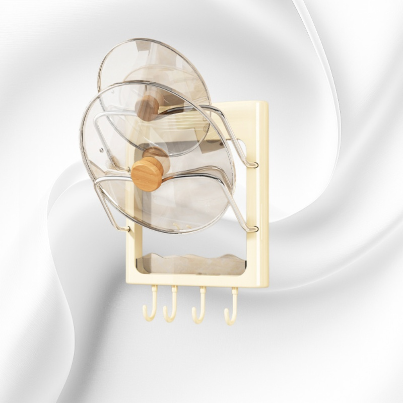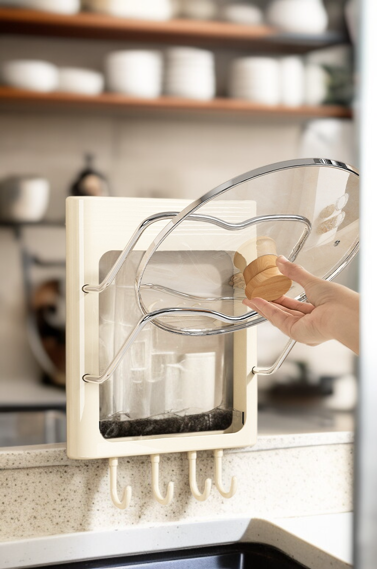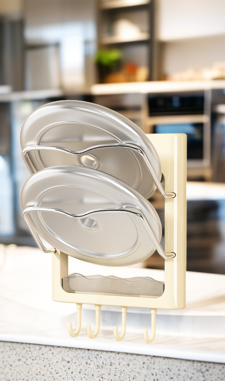 ชั้นวางฝาหม้อและเครื่องม้วนผมติดผนัง ไม่ต้องเจาะผนัง